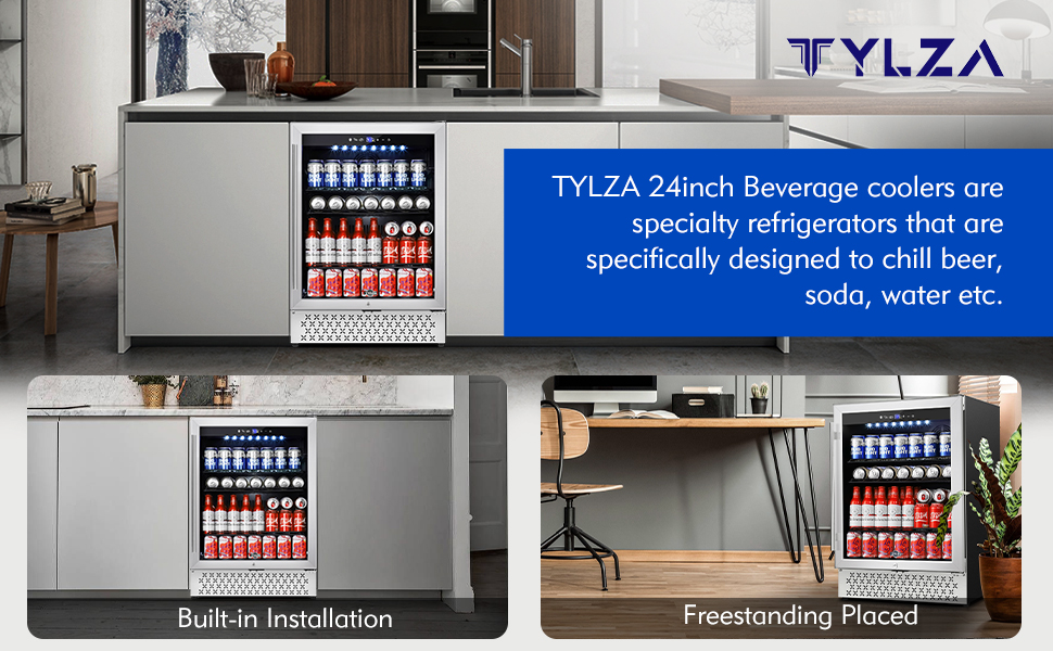 【Appliances】Tylza Beverage Refrigerator 24 Inch, 190 Can Built-in/Freestanding Beverage Cooler Fridge
