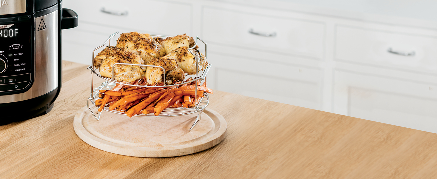 DELUXE REVERSIBLE RACK: Steam and broil, as well as TenderCrisp up to 8 chicken breasts at once or add servings to layered 360.