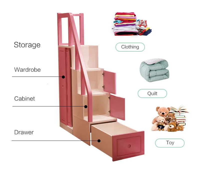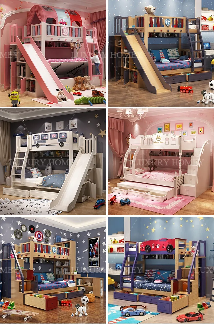 [Easy to assemble bunk bed frame]-The wooden bunk bed with slide and storage function is a value-conscious choice because it does not require a box-spring bed or a base. Just put your mattress on (not including the mattress), you can enjoy the precious playground time. Our double bunk beds come with detailed instructions and numbered parts so that they can be easily assembled step by step. If any parts are lost or damaged during transportation, please contact us and we will help you solve the problem as soon as possible.