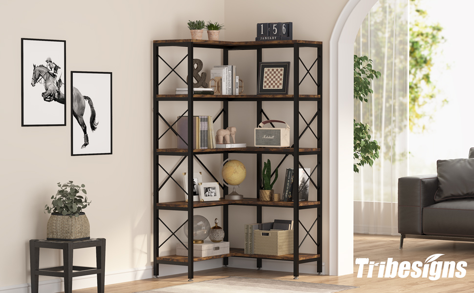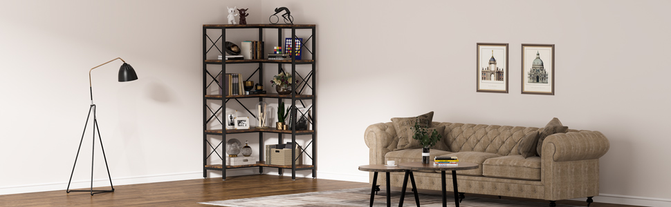 ✔ 【ADD VISUAL CHARISMA】 Steeped in rustic style, this corner shelf with matte black frame, X-bars blends functionality and self-expression together, working as a real enrichment for the lovers of industrial design furniture. This 5-shelf bookshelf is a great solution to add extra space for living room, bedroom and small apartment.
