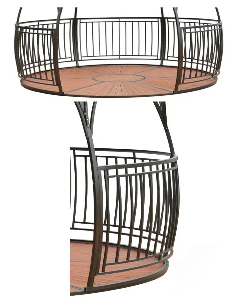 . Comes with a pre-drilled base and expansion screws for concrete floors. Tip: If installing on wood floors, you need to purchase specific expansion screws for wood panels.BEAUTIFUL LIFE - gazebo adds character to any area, creating the perfect setting for all your outdoor entertainment needs. The stunning design. brings a warmth and distinctive feel to any space.MULTI USE - The outdoor patio gazebo is perfect for backyards, patios, lawns, courtyards and other outdoor spaces and for events like BBQ, parties and weddings just to name a few.INSTALLATION - Assembly required. We advice you to do this work with 1-2 people. You need to prepare ladders and gloves Electric drill when installing.