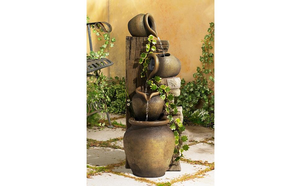 Experience the soothing sound of water transferring from one spouted jug to the next with this lovely fountain.