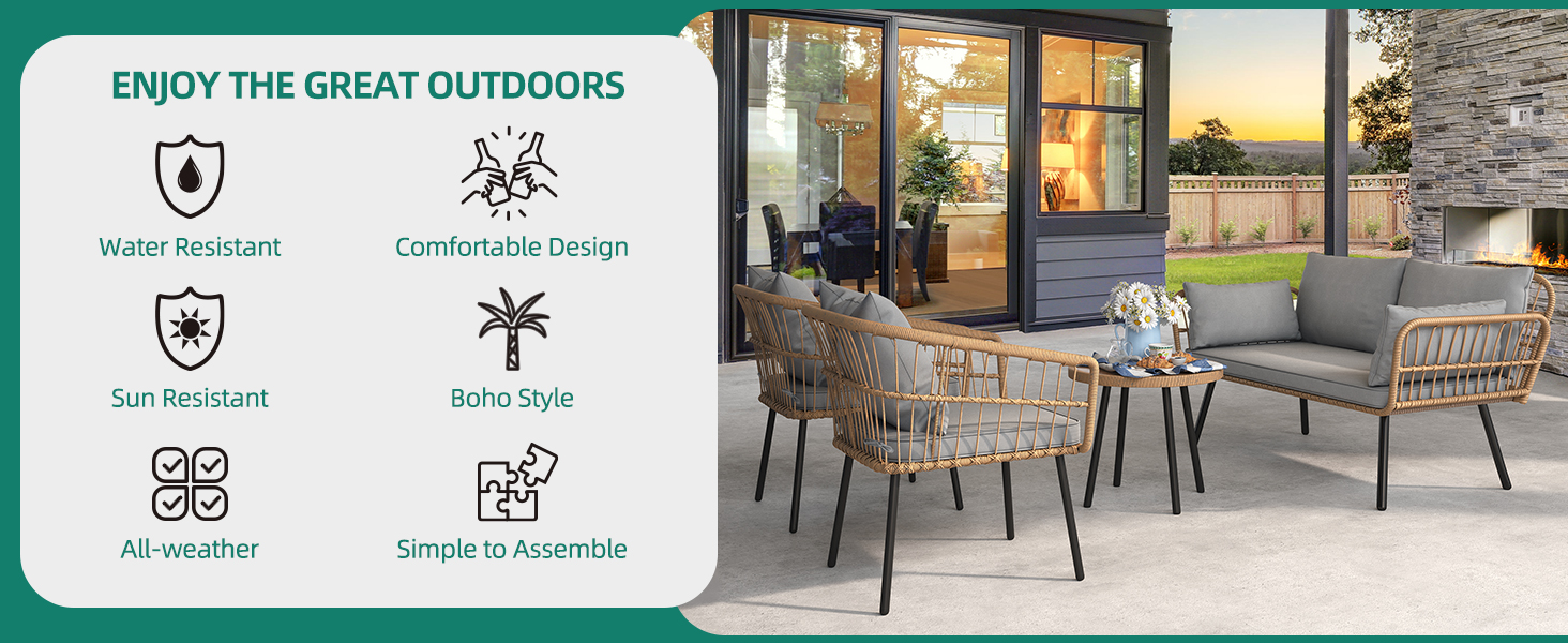 - Enjoy Leisure Time - Including a love-seat, two armchairs and a coffee table, this chat set makes you encircled by soft cushions & lumbar pillows & enjoy lounging & chatting with friends or families on sunshine weekend afternoons, ideal for patio, backyard, deck, poolside, etc.