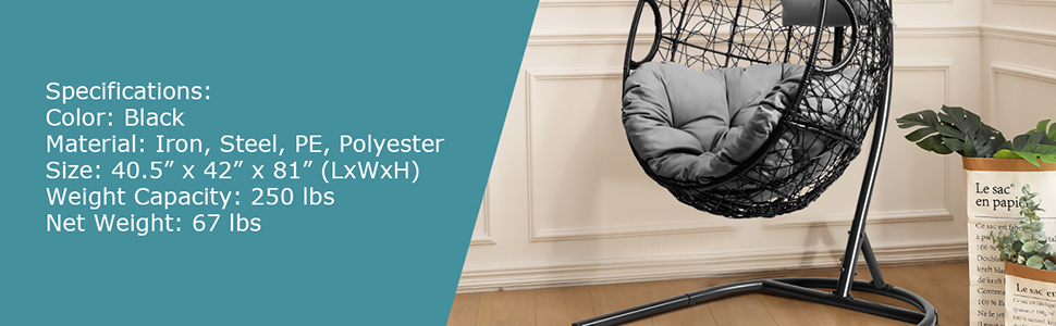 • Indoor/Outdoor Use: The swing chair is designed for both indoor and outdoor use. Unique egg-shape appearance blends with the surrounding environment better and adds a special leisure feeling. ❤️❤️❤️Please kindly note: This hammock stand and hammock chair set will be shipped in 2 boxes.❤️❤️❤️