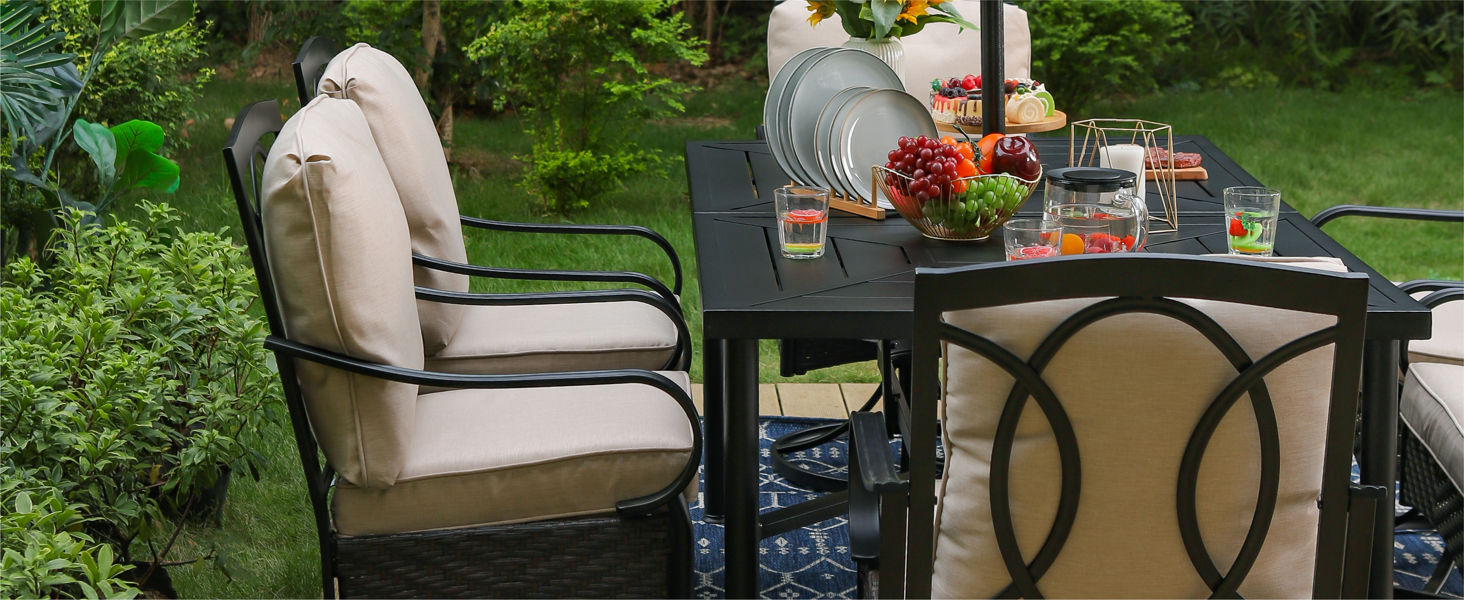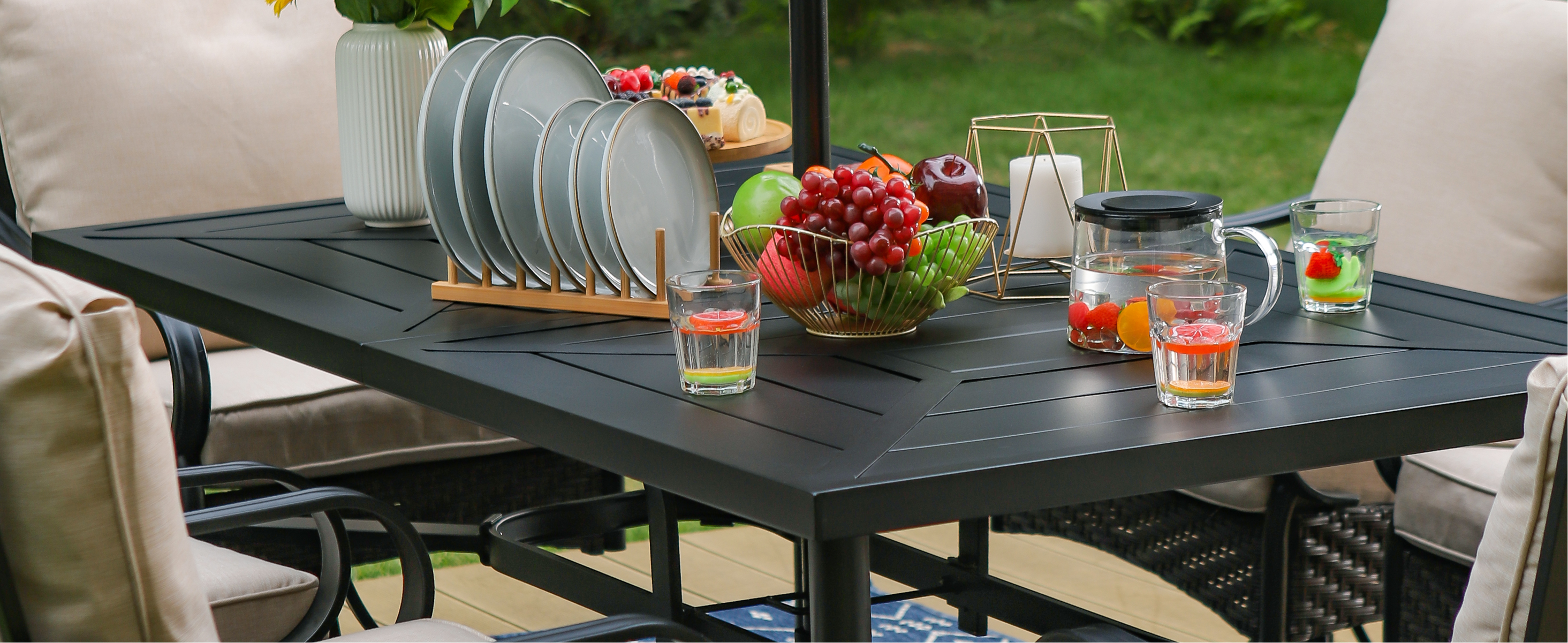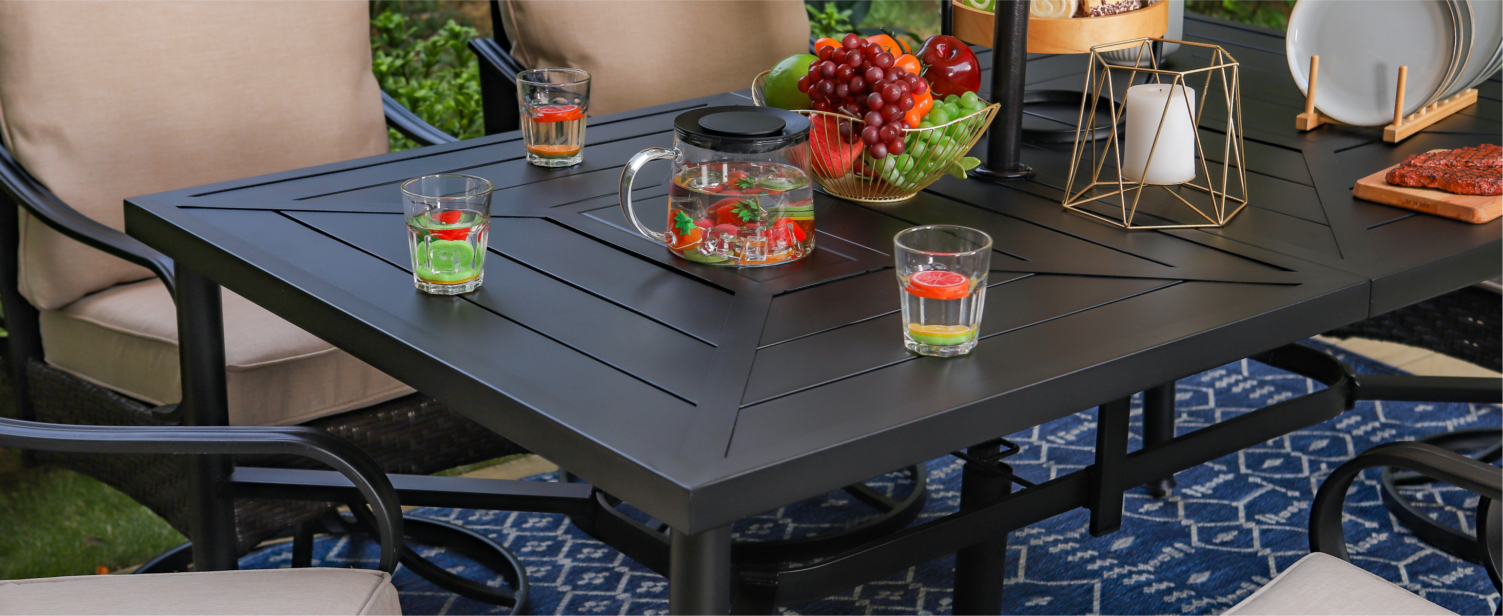 - 【Extra Large Dining Table】Our outdoor dining table is larger than others. It can meet your daily family needs when matched with our patio dining chairs. The all metal steel material makes this dining table more durable and usable.