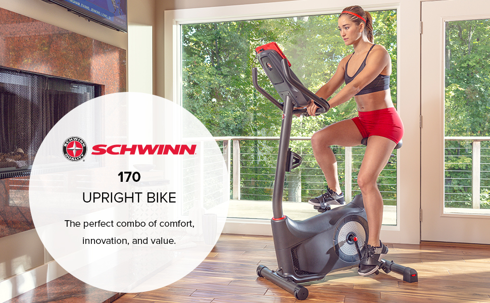 Brand Schwinn Fitness Special Feature Distance Travelled Monitor Color Grey Power Source Corded Electric Item Weight 58.4 Pounds Material Other Resistance Mechanism Fluid Maximum Weight Recommendation 300 Pounds Model Name Schwinn 170 Upright Bike (2017) Product Dimensions 21.4"D x 41.3"W x 55.6"H Maximum Height 6.6 Feet Minimum Height 4.6 Feet Number of Resistance Levels 25 Item Package Dimensions L x W x H 41 x 22.5 x 13 inches Package Weight 32.66 Kilograms Item Dimensions LxWxH 41.3 x 21.4 x 55.6 inches Brand Name Schwinn Fitness Warranty Description 1 year electronics, 2 years mechanical parts, 90 days labor, 10 years frame Suggested Users Unisex-adult Number of Items 1 Manufacturer Nautilus Inc. Style Schwinn 170 Included Components Exercise Bike Size One Size Sport Type Cycling Customer questions & answers