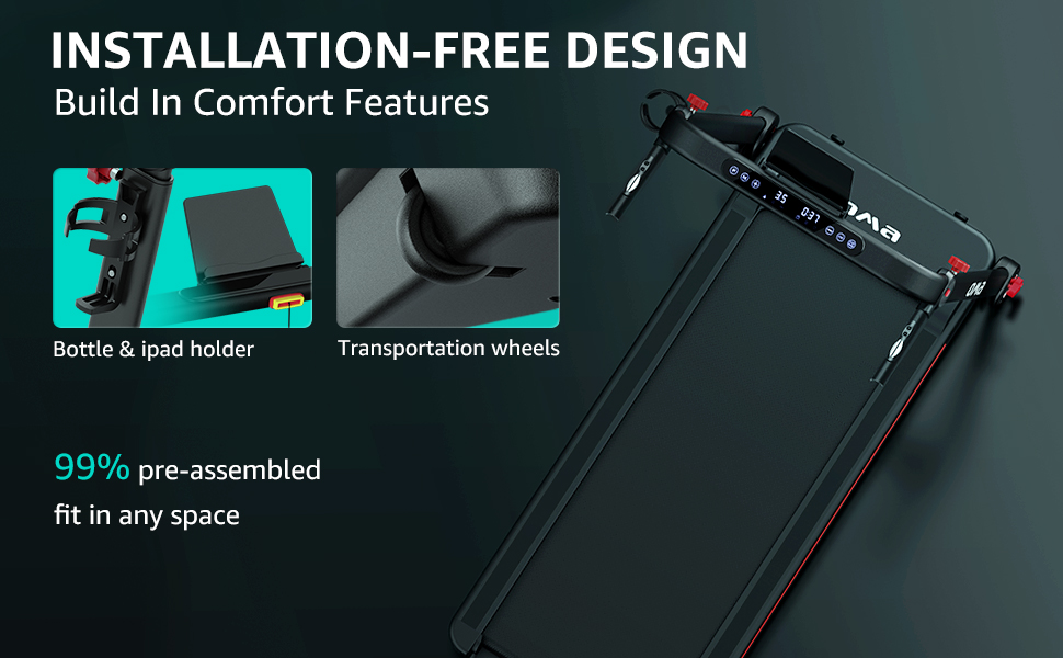 - Easy To Assemble & Use--Our treadmill for home is designed with 99% pre-assembled and can be used directly after out of the box. It only takes about a few minutes to unfold by yourself, very friendly to every home exerciser. Easy to operate, comfortable for walking, jogging and running. Simplicity of the design, with higher functionality.