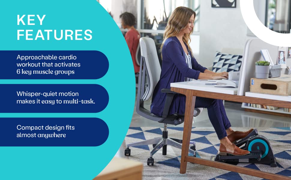 • LOW IMPACT, ULTRA SMOOTH ELIPTICAL EXERCISE MACHINE - Move a little more each day to reach your wellness goals! Use this under-desk elliptical, burn calories, improve mobility, and increase strength