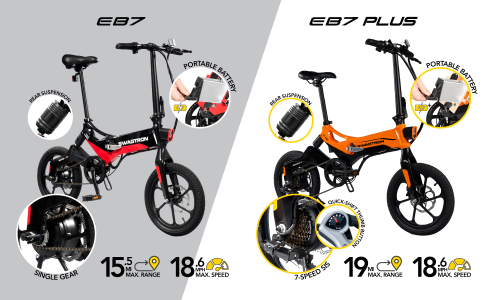 SWAGTRON EB7 Plus Folding eBike with 7 Speed Gears & Removable Battery
