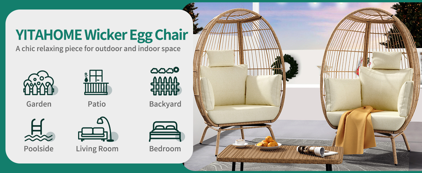 - Not just for outdoors - YITAHOME egg chairs are truly modern additions for outdoors like garden, porch, patio, pool etc., and they also inject a laid-back bohemian feel to your living room and bedroom too